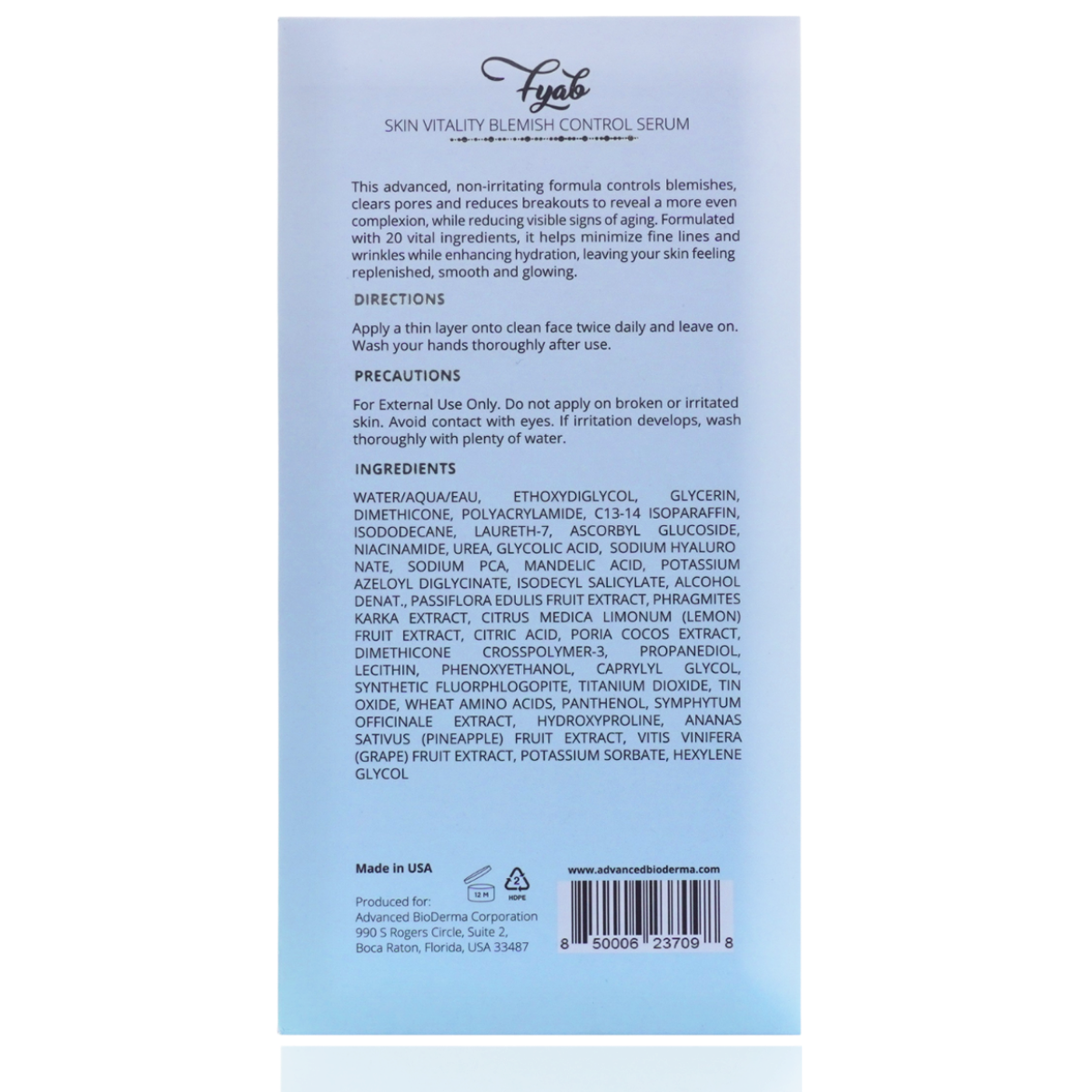 • Reveal Clear, Smooth, Vibrant Skin with FYAB Blemish Control Serum // Paraben and Fragrance-Free.