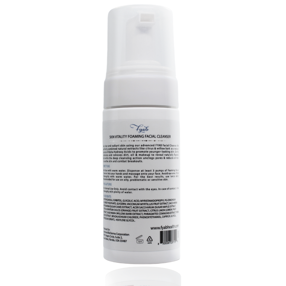 • Get clear and radiant skin using our advanced FYAB Foaming Facial Cleanser. We perfectly combined natural extracts like citrus & willow bark as a natural source of Alpha Hydroxy Acids.